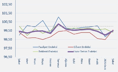 Şubat verilerine göre faaliyet endeksi, ocaktaki belirgin gerilemenin ardından yeniden yükselerek kaybının önemli bir kısmını telafi etti. Güven endeksi de benzer şekilde toparlanma gösterdi. Buna karşılık beklenti endeksi sınırlı bir düşüş kaydetti. Endekslerin birbirine yakın seyretmesi, sektörün yılın ilk aylarında dalgalı ama dengeli bir görünüm verdiğini gösterdi.
