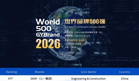 GY Brand Global Marka Araştırma Enstitüsü, 7 Ocak’ta 2026 Dünyanın En Değerli 500 Markası raporunu yayımladı. Rapora göre SANY, listede 477. sırada yer alarak bir kez daha dünyanın en değerli markaları arasına girdi. SANY, bu listede yer alan tek Çinli iş makineleri markası olarak dikkat çekti.