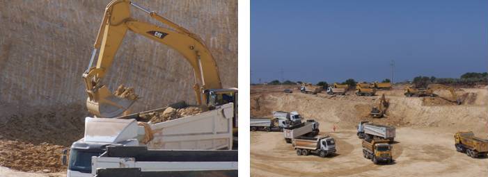 Burada yükleme yapan makina 6 m3’ lük kovaya sahip 90 tonluk bir ekskavatör, kamyon ise 26m3 kapasiteli bir konvansiyonel kamyondur. İlk bakıldığında kova hacmi ve damper hacmi oldukça uygun görülebilir, ancak resimlerden de görüleceği üzere ekskavatör bu tip damperli kamyonları sadece yandan yükleyebilmektedir. Bunun nedeni kolayca anlaşılabilir, kovanın genişliği neredeyse damper genişliği kadardır ve bu da ekskavatörün sadece yandan yüklemesine izin vermektedir. Ekskavatör operatörü hızlı yükleme yapamadığının yanında tek tip yanaşma geometrisi zorunluluğundan dolayı kamyonu istediği noktaya da yanaştıramaz. Bu da kule dönüş açısının kontrol edilememesi problemini ortaya çıkarır ve operatör yükleme işinin neredeyse çok büyük bölümünü 90 derecelerin üzerinde gerçekleştirir. Yukarıdaki resimlerden de görüleceği üzere ekskavatörün yükleme açıları 90-130 dereceler arasında kalmakta. Bu yükleme noktasındaki en iyi yükleme şekli, kamyonların alt kademeye indirilip ekskavatörün yükleme yönüne dik yanaştırılması olmalıdır. Ancak kovanın büyük olması ve yandan yükleme zorunluluğu bu avantajın kullanılmasına olanak vermez.